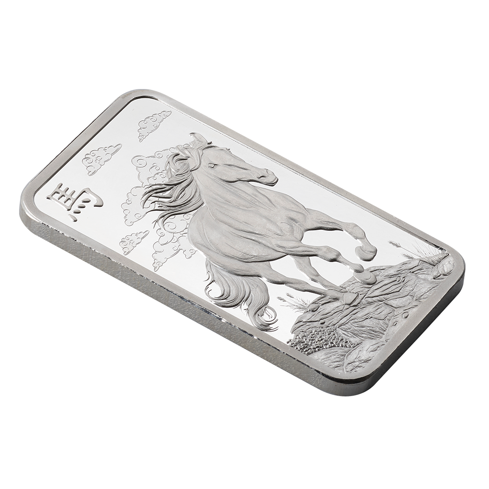 The Lunar Legends series tells the stories related to each of the 12 animals of the Chinese Zodiac. 2026 is the Year of the Horse - the 1,000 Mile Horse is a mythical creature of classic Chinese folklore, able to travel one thousand li, or approximately one third of a mile, in a single day. This amazing horse was too swift to be mounted by anyone but Bo Le, a famed expert. The 1,000 Mile Horse is captured in 1oz of pure silver! A symbol of perseverance and mythical might, it's a striking addition to any collector's stable. Housed in a vibrant CertiPAMP assay card accompanied by a gift sleeve, each bar is individually serialized. Third issues in the Lunar Legends series.
